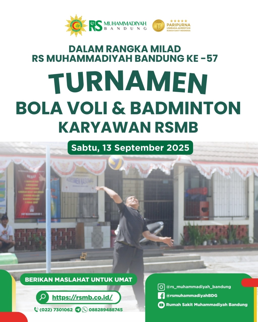 Sebagai acara puncak dalam memperingati Milad RS Muhammadiyah bandung yang ke-57,Sabtu 29 November 2025 RS Muhammadiyah Bandung menyelenggarakan acara Fun Walk yang diikuti oleh pegawai ,jajaran direksi dan masyarakt sekitar. tidakk urang sebanyak 250 peserta yang terlibat dan ikut dalam acara fun walk ini.Disamping acara fun walk, dilaksanakan juga resepsi milad rumah sakit dan bazar umkm.